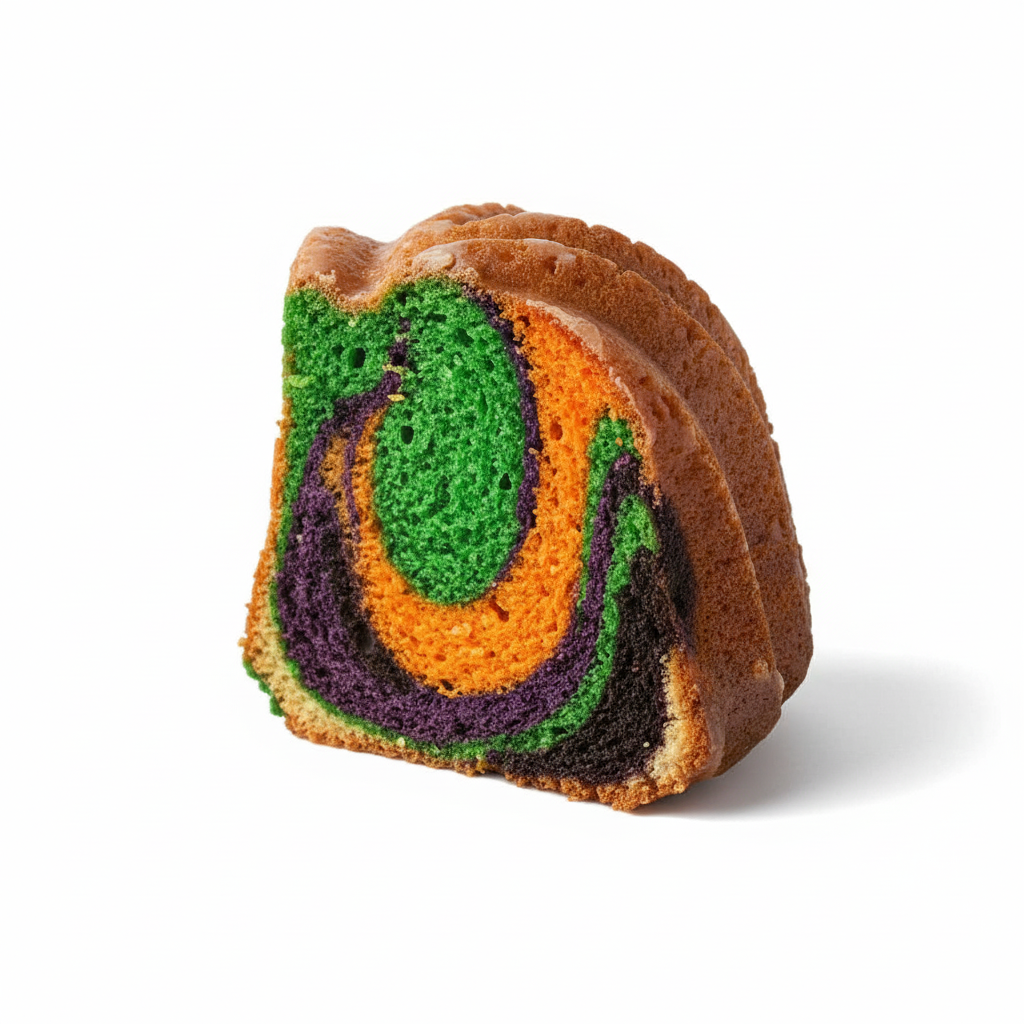 A hauntingly beautiful twist on our classic rainbow cake! Halloween spirit swirls together in this moist, flavor-packed masterpiece *contains almonds*